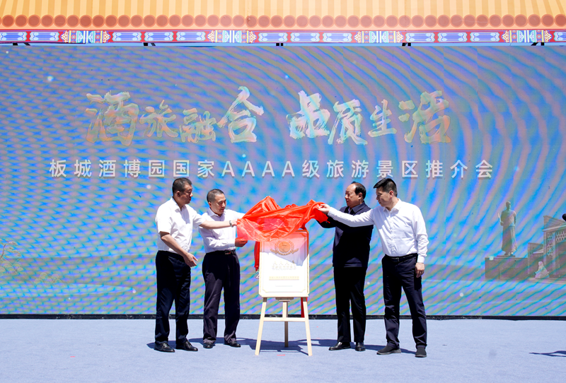 活動現(xiàn)場,承德市政協(xié)黨組書記、主席吳清海;承德市人大副主任郭士剛;承德縣人民政府縣長柳雪松;河北板城酒業(yè)黨委書記、總經(jīng)理張春生登臺,共同為板城酒博園國家4A級旅游景區(qū)進行揭牌。
