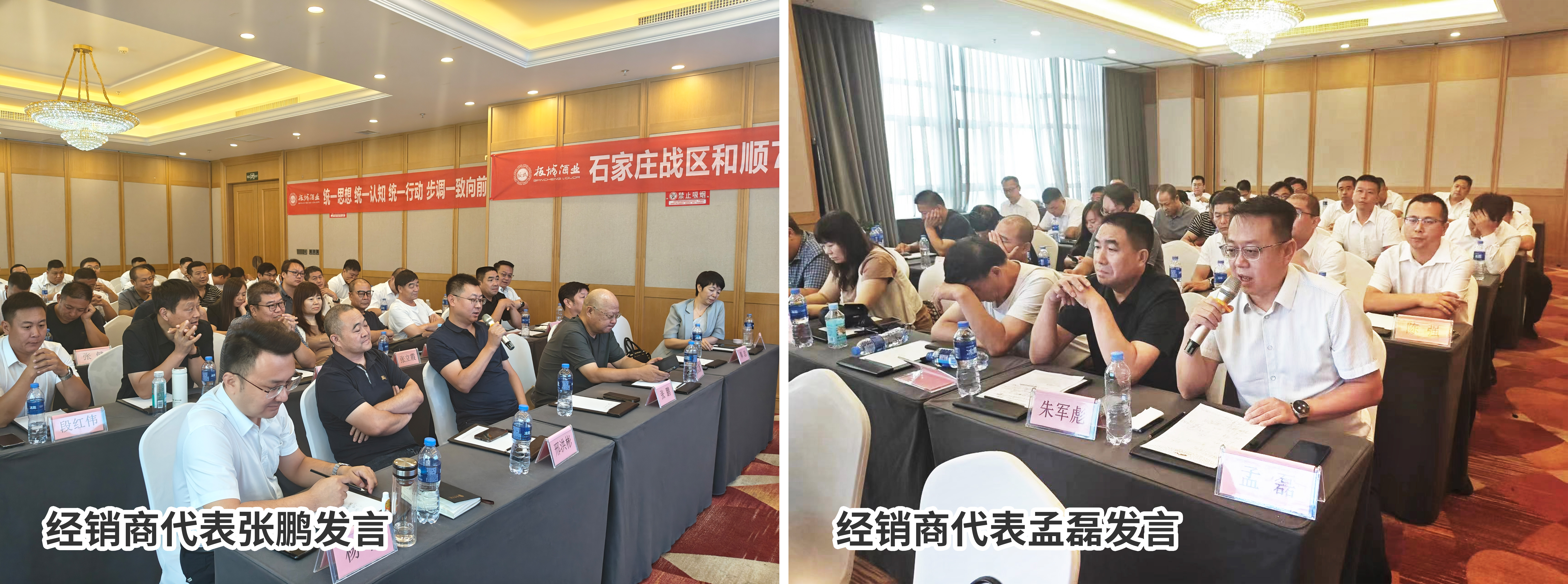 會議中,經(jīng)銷商代表張鵬、孟磊在互動環(huán)節(jié)中進行發(fā)言,他們強調(diào)統(tǒng)一步調(diào),統(tǒng)一行動,相關(guān)動作策略一盤棋,加強市場管控,堅決落地相關(guān)市場戰(zhàn)略,為實現(xiàn)銷量、利潤新突破,實現(xiàn)石家莊戰(zhàn)區(qū)整體市場的良性發(fā)展而共同努力。