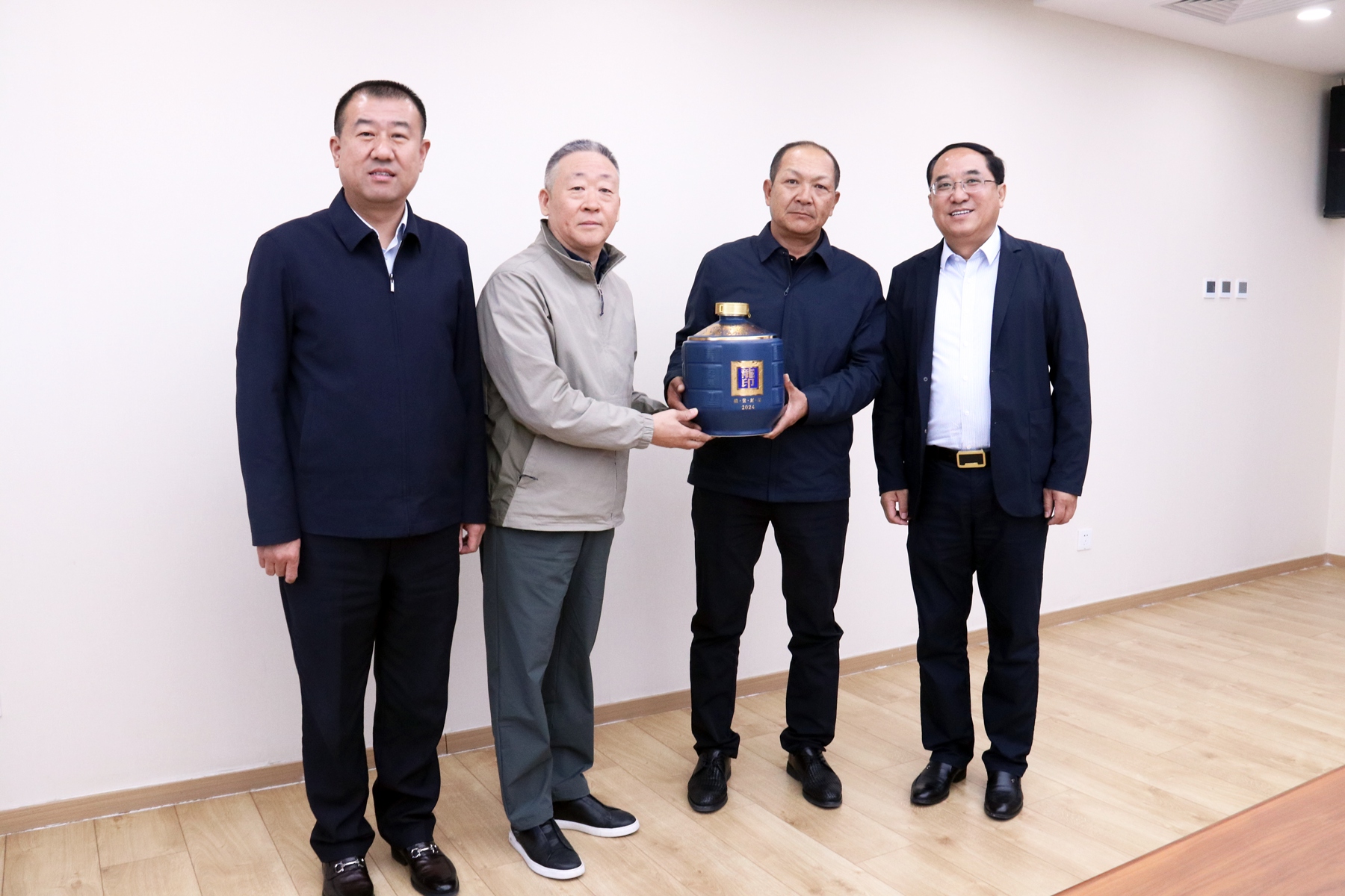 板城酒業(yè)代表承德酒行業(yè)向中國酒業(yè)協(xié)會贈送龍印盛世封壇酒。
