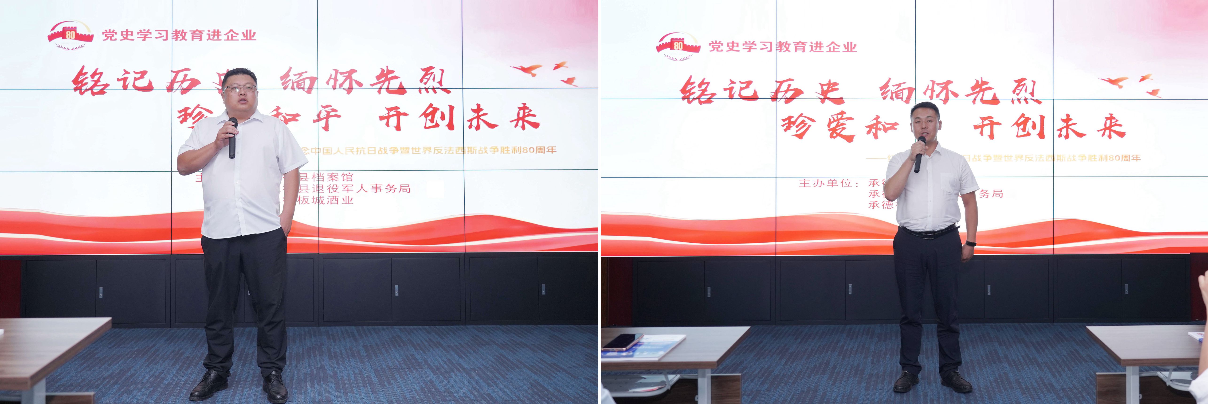 在紀念中國人民抗日戰(zhàn)爭暨世界反法西斯戰(zhàn)爭勝利80周年之際,8月20日,板城酒業(yè)聯(lián)合承德縣檔案館、承德縣退役軍人事務(wù)局舉辦本次黨史學(xué)習教育主題活動。