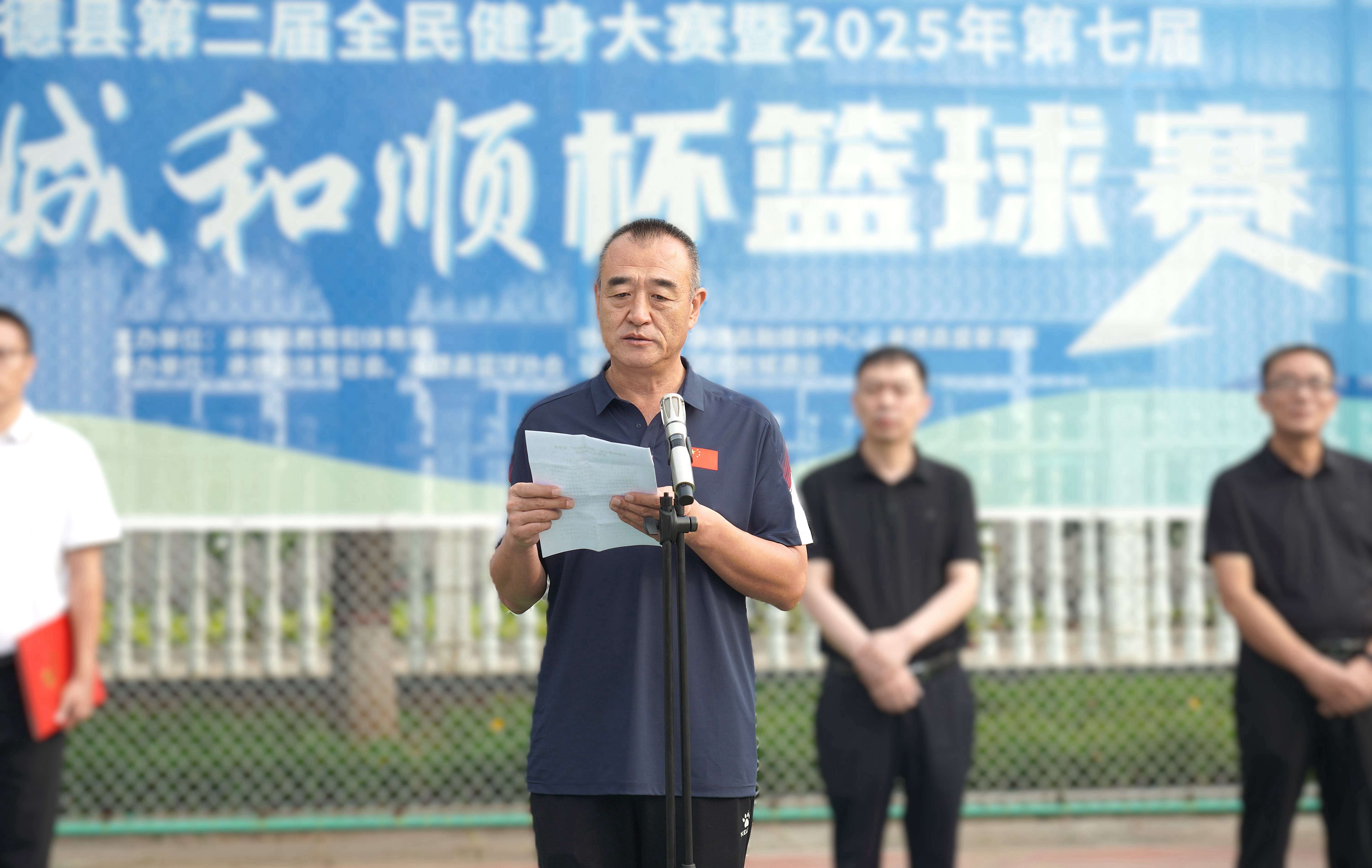 承德縣教育和體育局體育工作指導中心主任朱瑞東發(fā)表致辭,朱主任講到:“縣教體局聯(lián)合板城酒業(yè)持續(xù)舉辦體育賽事活動,連續(xù)舉辦七屆‘板城和順杯’籃球賽事,為承德縣全民健身提供了重要平臺,縣教體局將持續(xù)開展全民健身活動,搭建全民健身平臺,開展形式多樣的體育活動,讓承德縣人民參與多種體育賽事。”